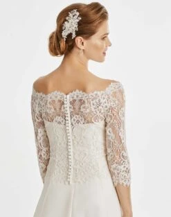 Boléro De Mariage Dentelle Guipure Ivoire Manches 3/4 Cathy