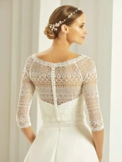 Boléro Mariage Dentelle Bohème Sans Manches E409 Bianco Evento