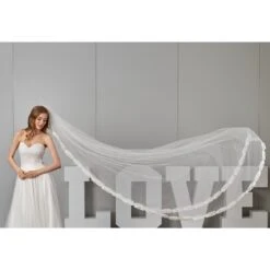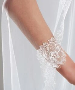 Voile De Mariage Ivoire Très Long Fleur De Guipure Caroline