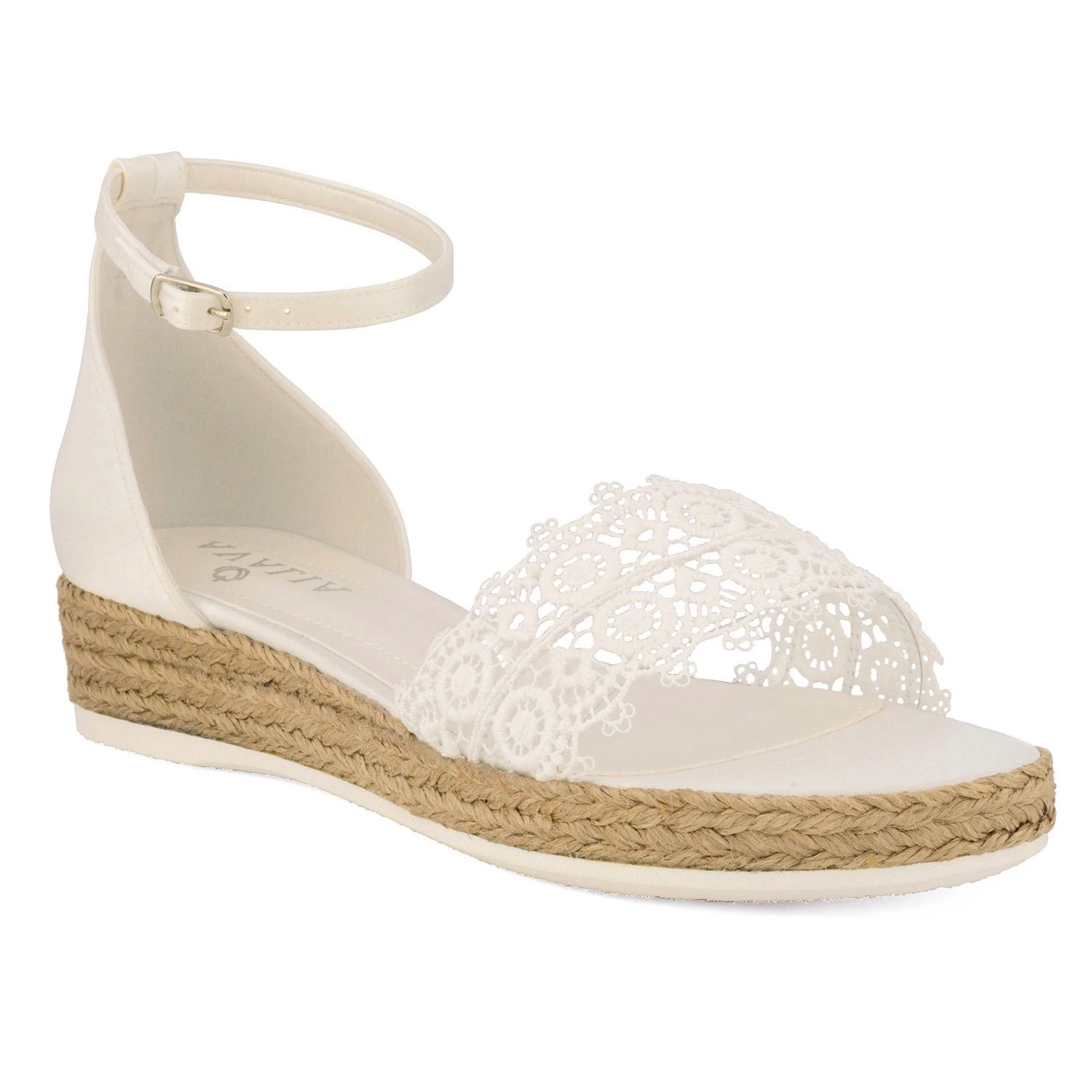 Sandales de mariage en dentelle et Ă semelles en cordes.