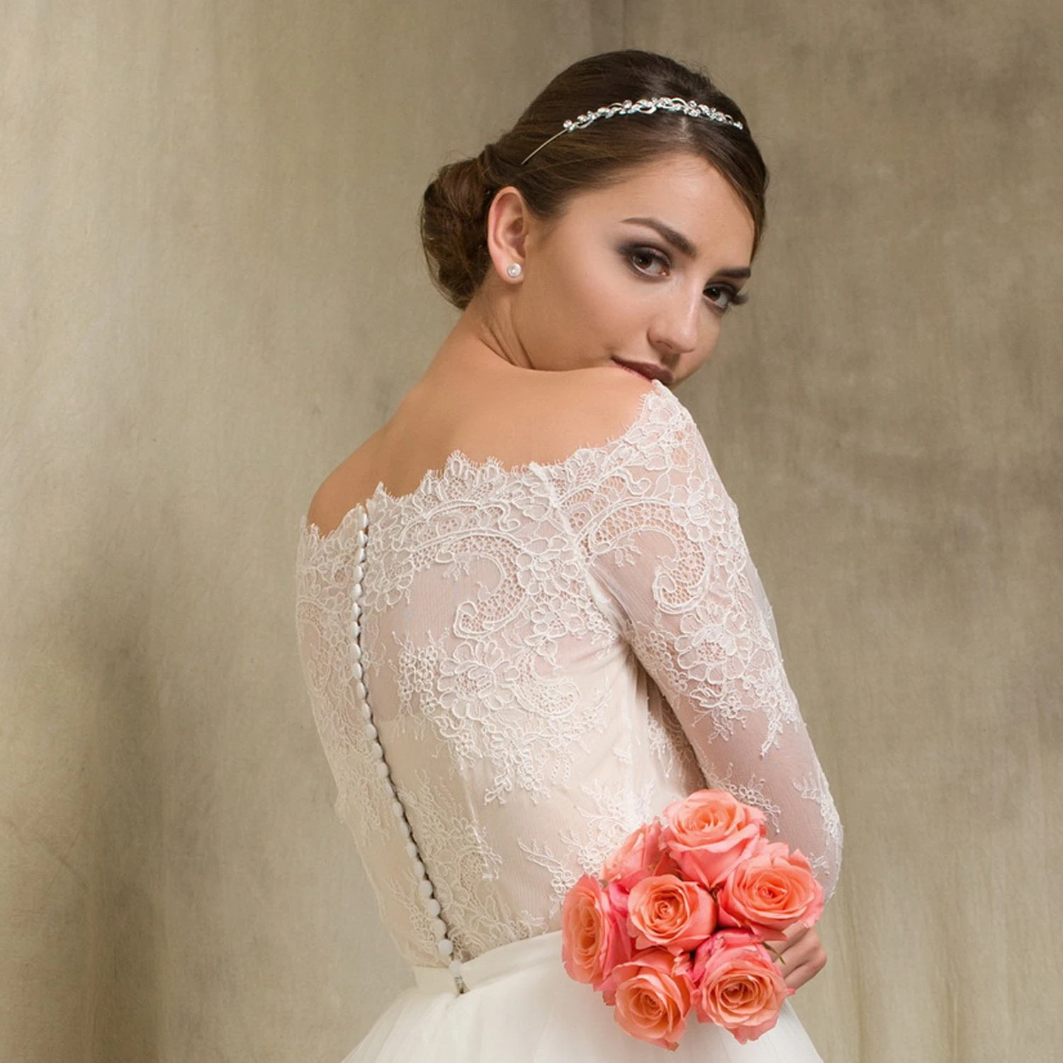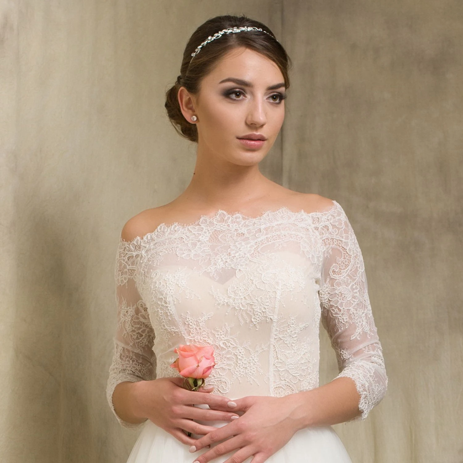 Body de mariée col bateau à manches 3/4 proposé en dentelle fleurie.
