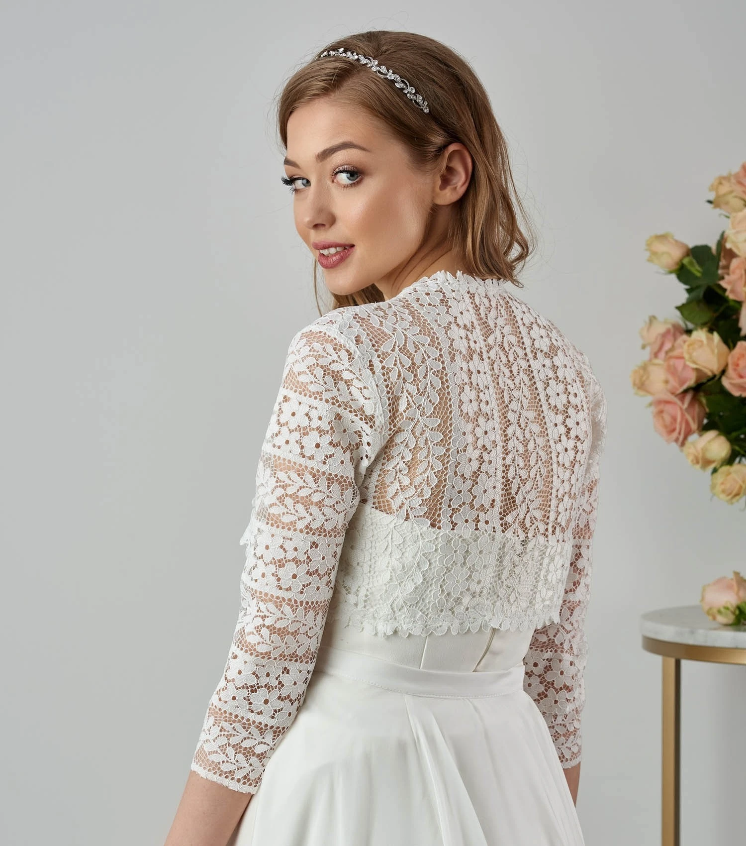 Boléro De Mariage Dentelle Guipure Ivoire Manches 3/4 Cathy