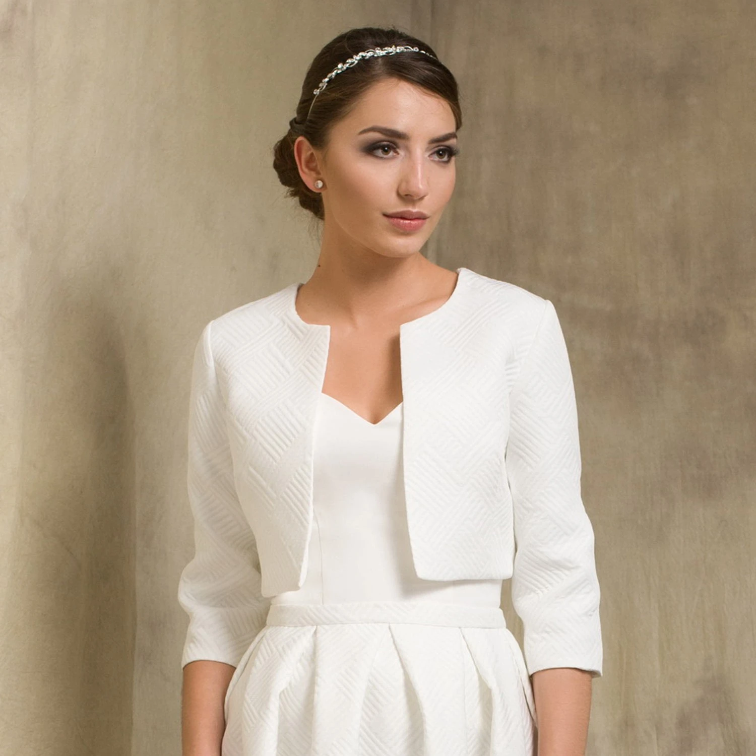 Boléro De Mariage En Jacquard Manches 3/4 Venusta