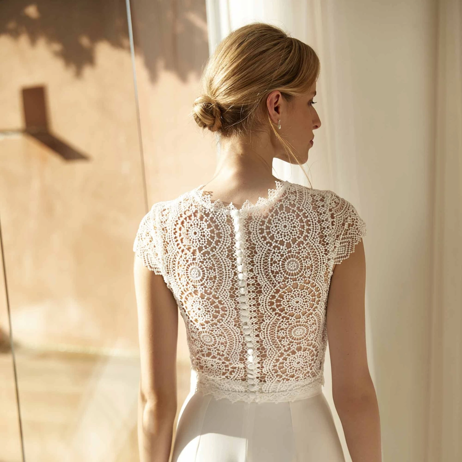 Boléro Mariage Manches Courtes Dentelle Bohème E408 Bianco Evento