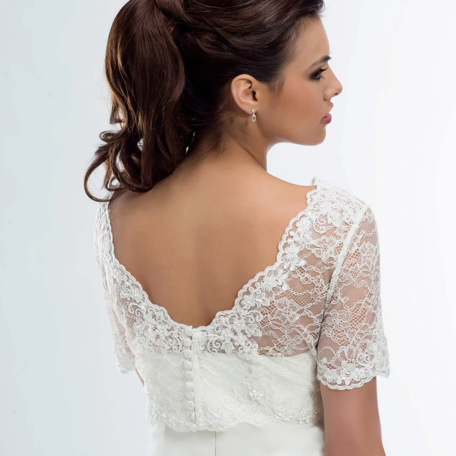 Boléro de mariée en dentelle, à manches 3/4.