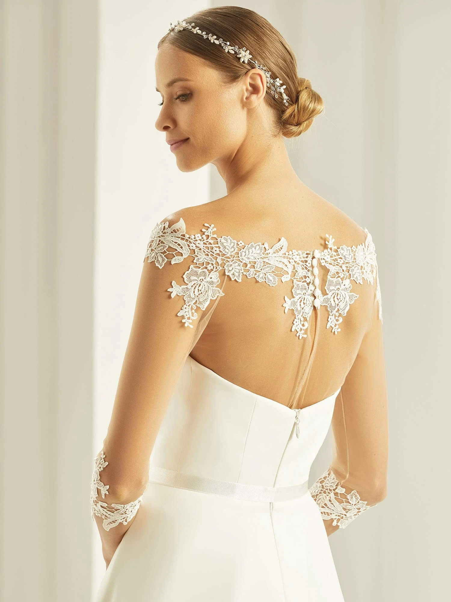 Boléro de mariée en dentelle ivoire à manches 3/4.