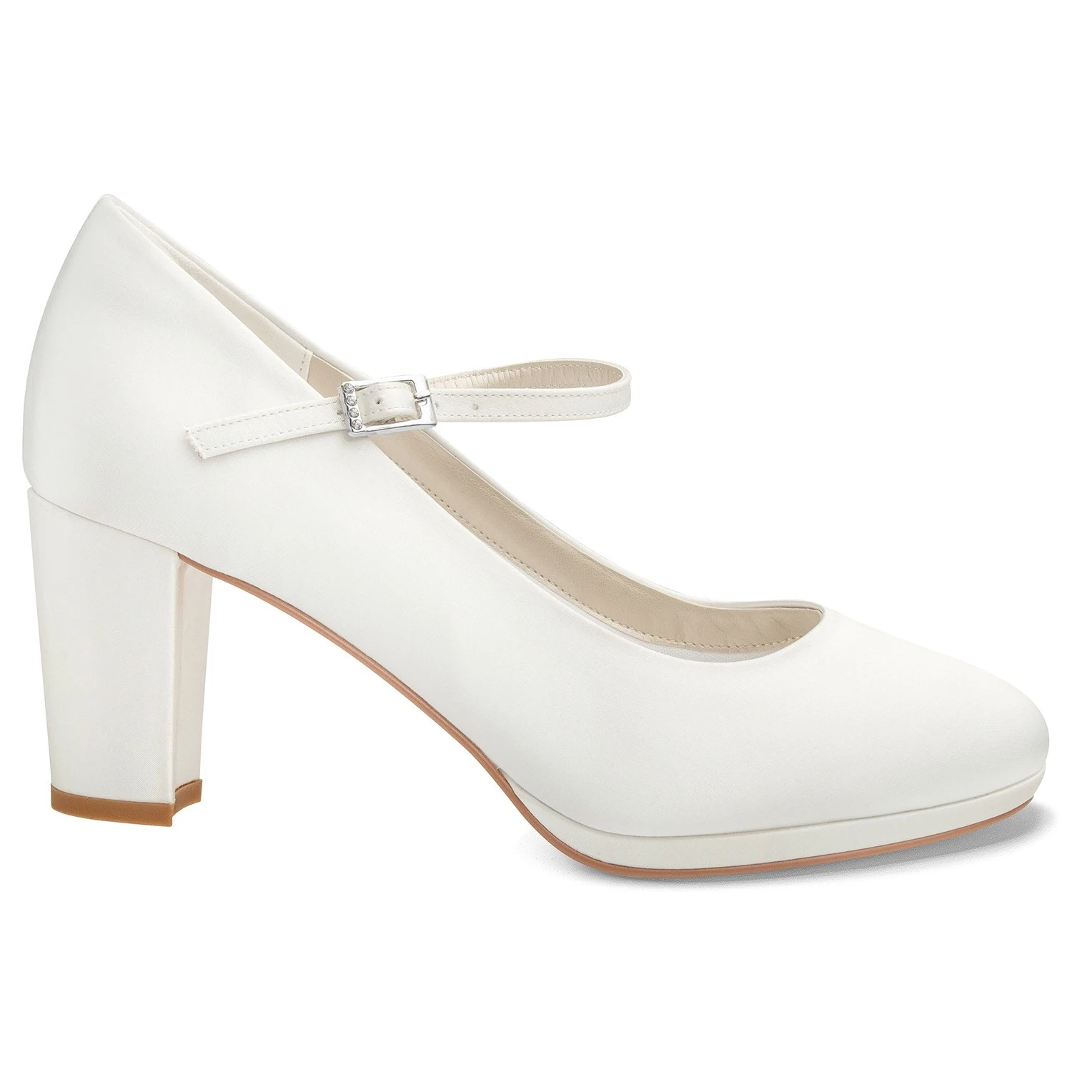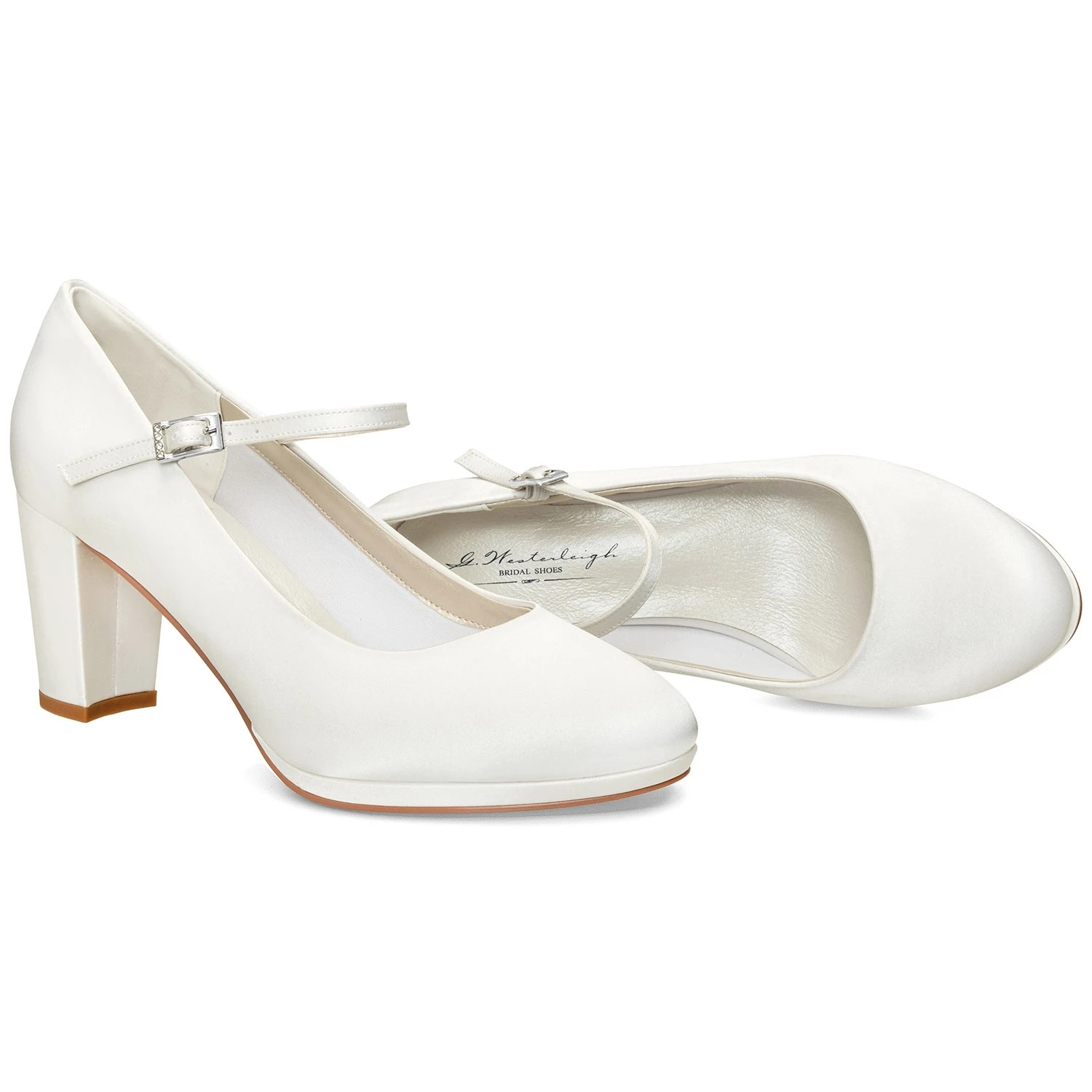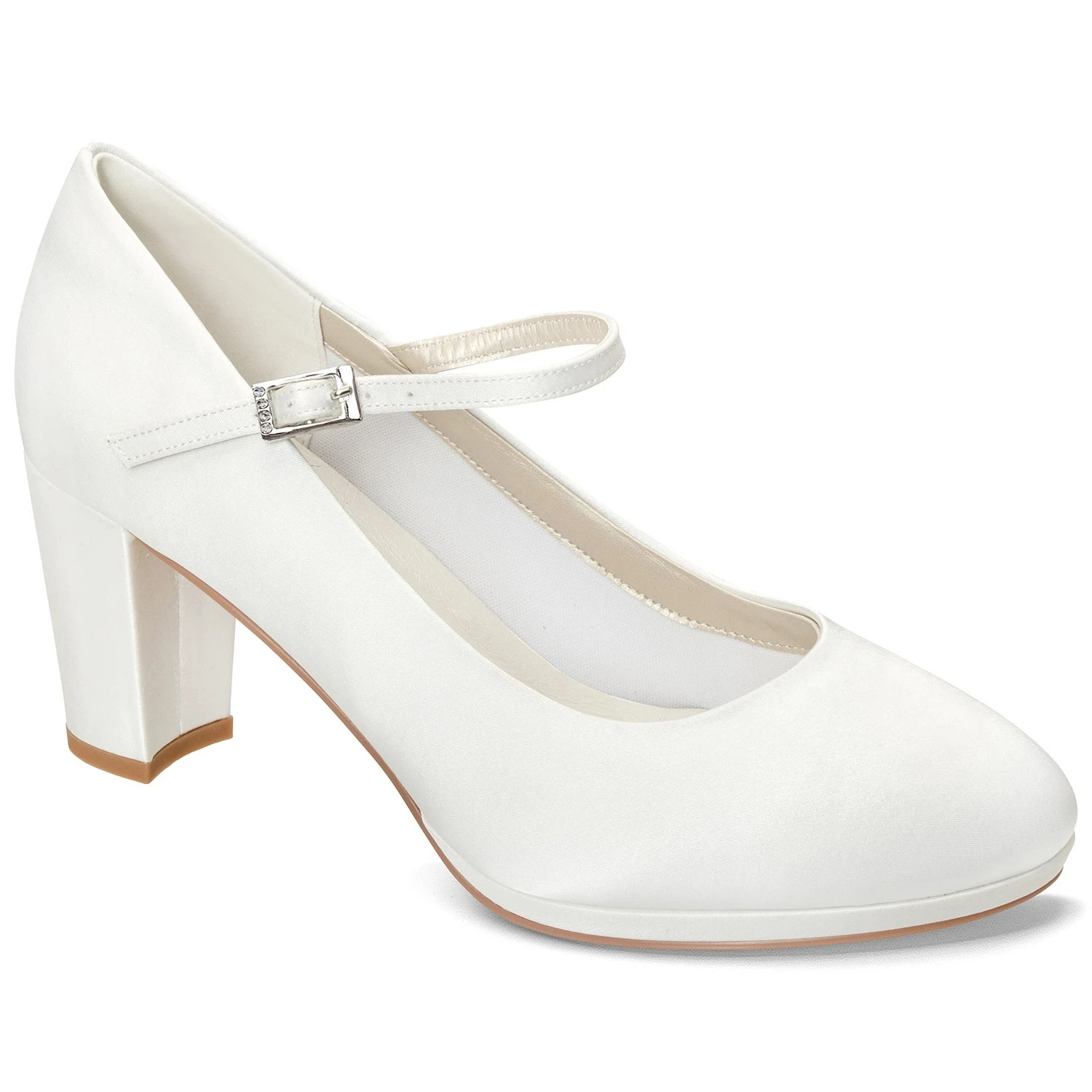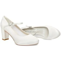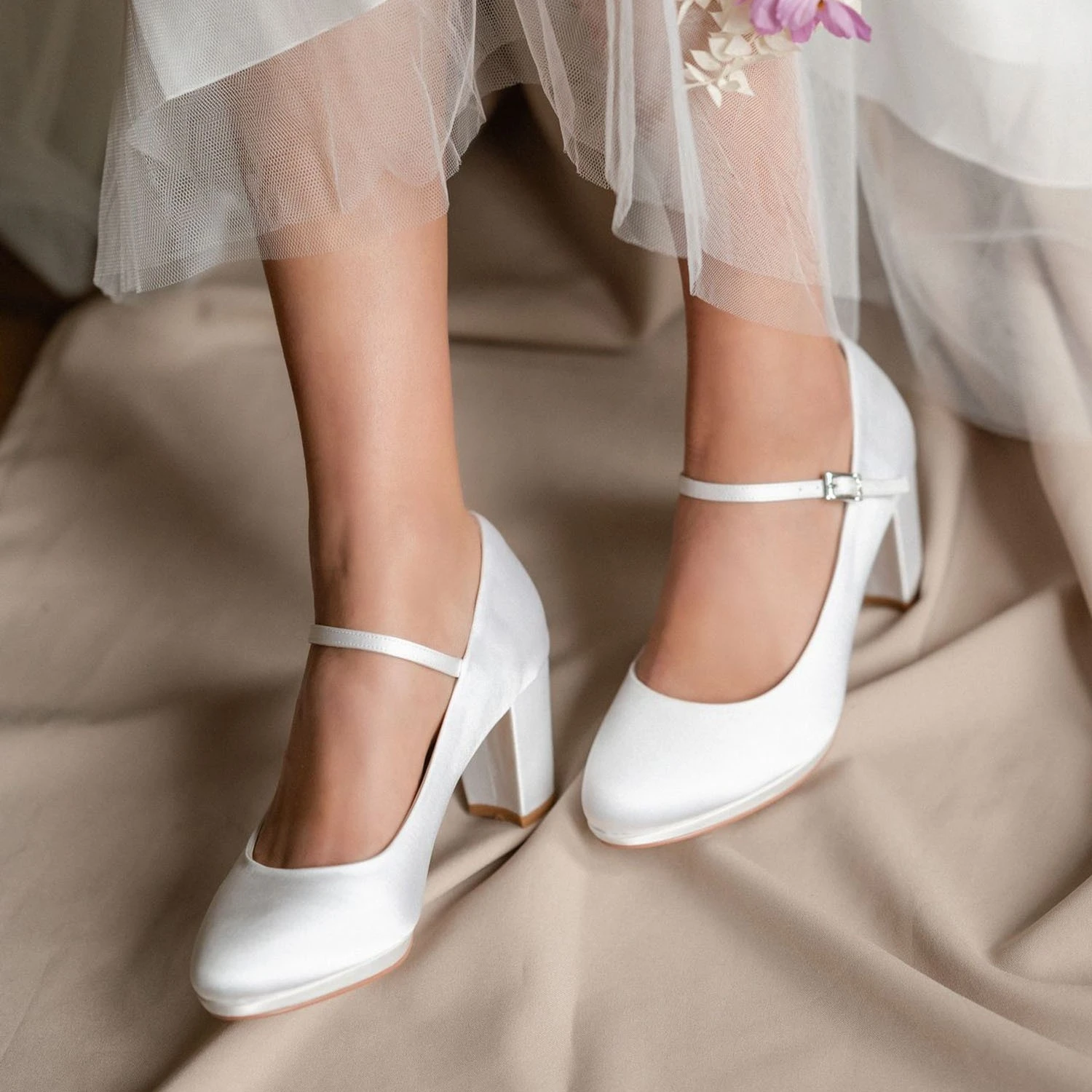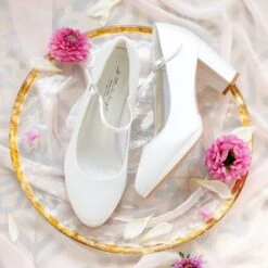 Brigitte est une chaussure de mariage en satin classique et élégante, fabriquée à la main.