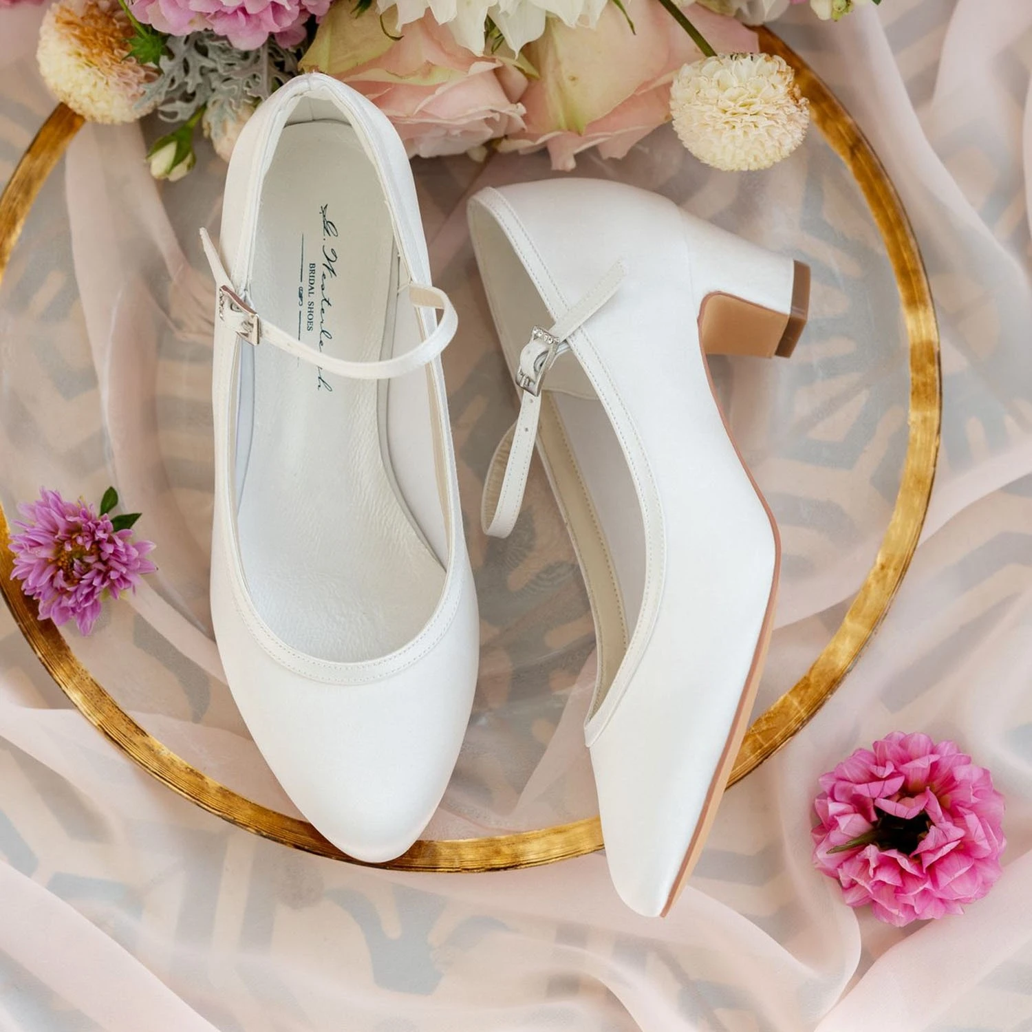 Ces chaussures sont idéales pour les mariées car elles ont un petit talon stable et élégantes avec leur bout en forme d’amande.