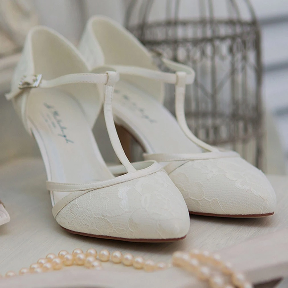 Chaussures de mariage en dentelle ivoire ou blanc.