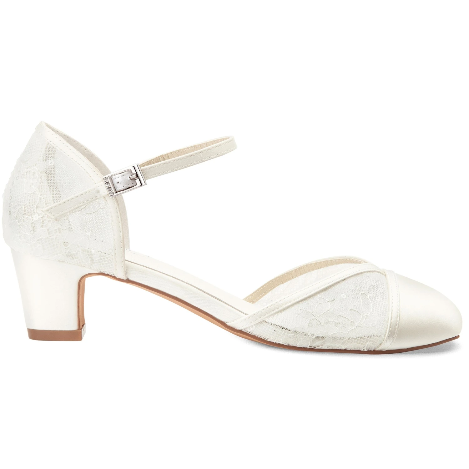 Hailey est une chaussure de mariage à petits talons, très confortable avec son talon bloc bas.