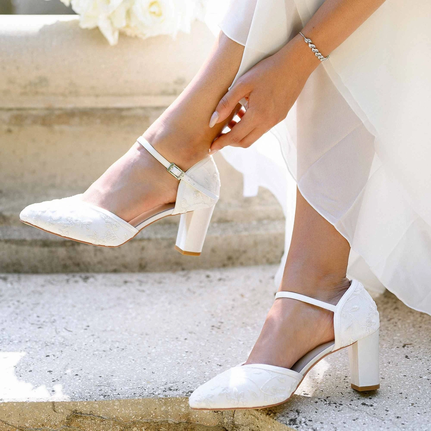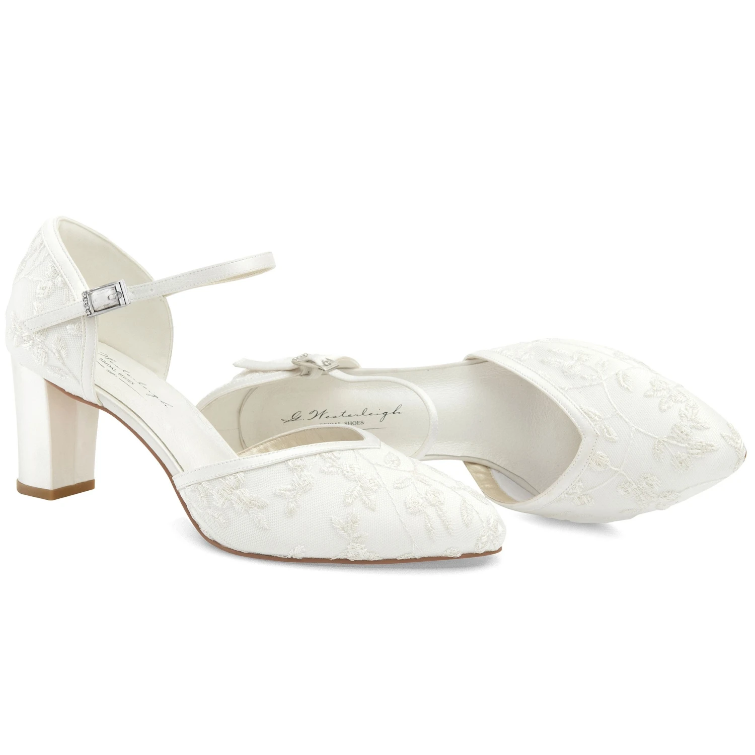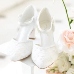 Indira est une chaussure de mariage romantique avec sa dentelle et son bout pointu.