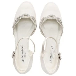 Chaussures de mariée à petit talon et bout rond. Agréablement décorées de cristal sur les croisés en bordure de la chaussure.