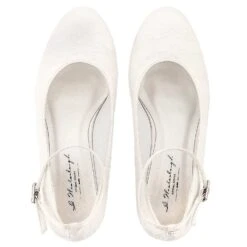 Chaussure de mariage recouverte de dentelle et à talon compensé