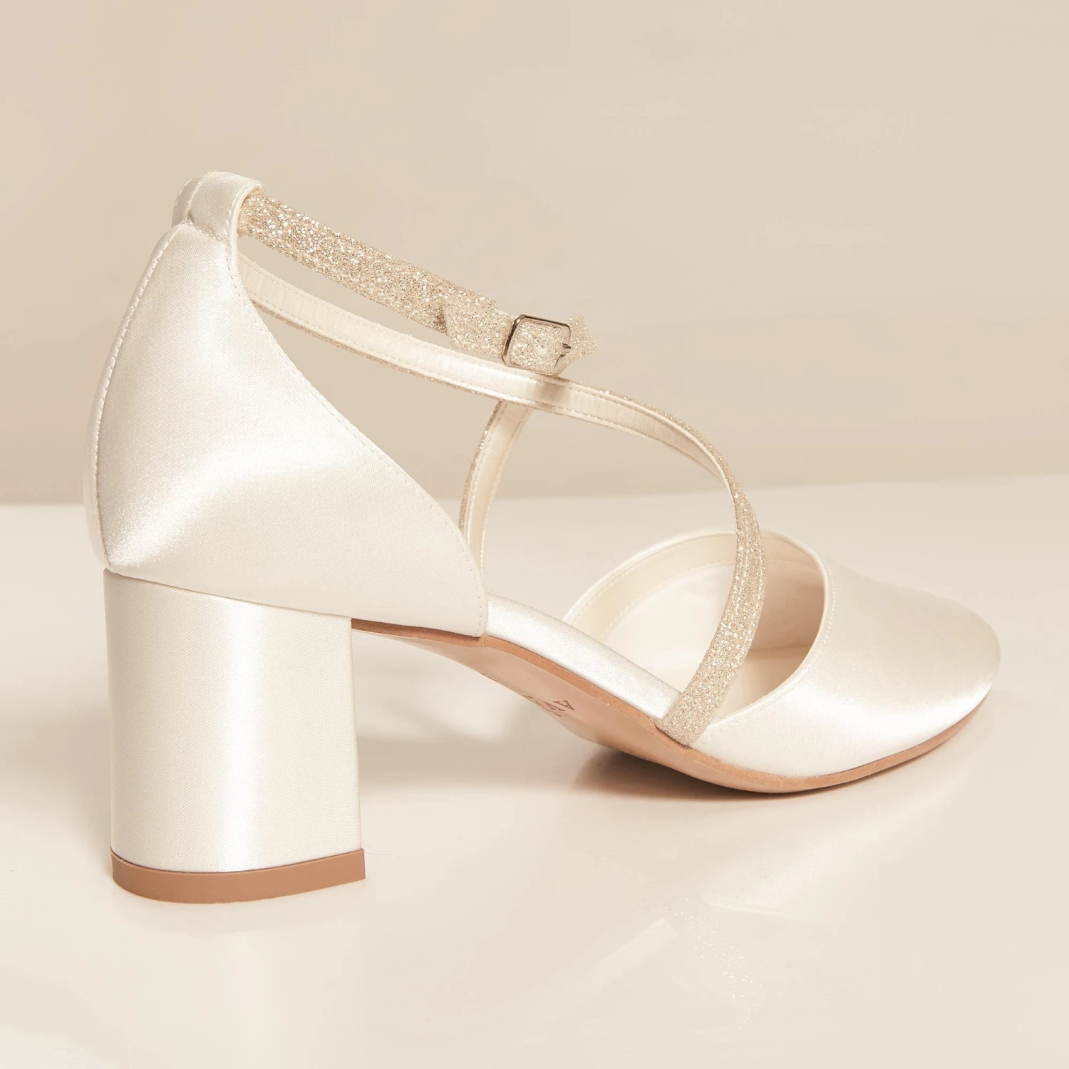 Chaussures de mariée élégantes, confectionnées en satin ivoire.