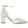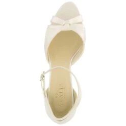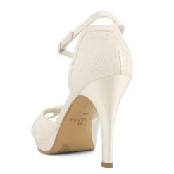 Chaussures de mariée avec jeu de satin et de dentelle, le tout dans un coloris ivoire.