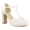 Chaussures de mariée en dentelle ivoire parsemée de sequins et bodures en satin.