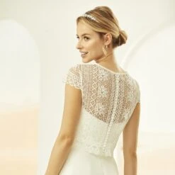 Boléro à manches courtes et se fermant dans le dos grâce à de petits boutons.