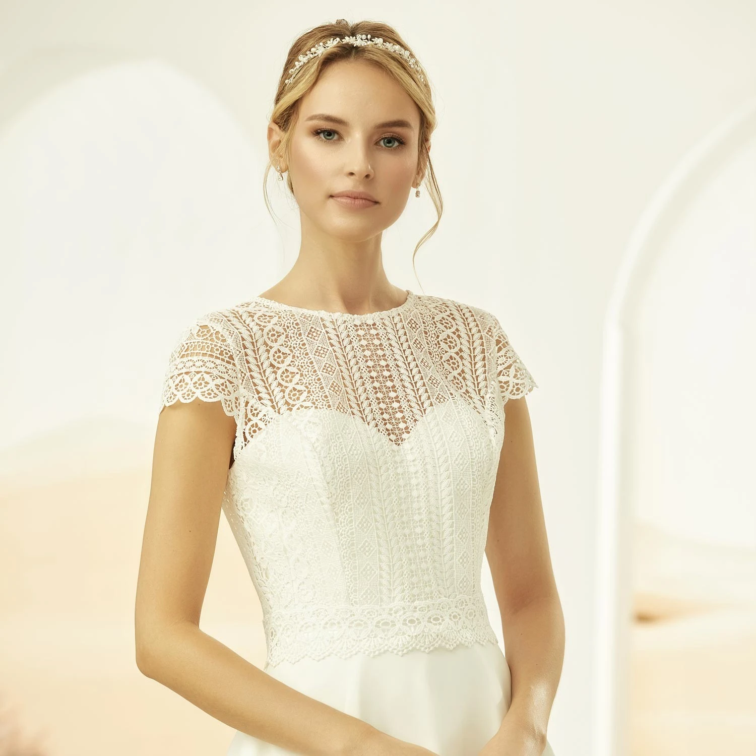 E324 – Bianco Evento – Boléro Mariage Bohème Dentelle Manches Courtes