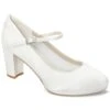 Chaussures de mariage à petit talon et bout pointu, confectionnées en satin ivoire.