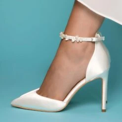 La bride à la cheville est magnifiquement décorées de perles irisées lumineuses.