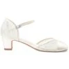 Chaussures de mariage ivoire Ă talon moyen, recouvertes de dentelle avec bordure en satin