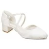 Cette chaussure de mariée est confectionnée en satin ivoire.