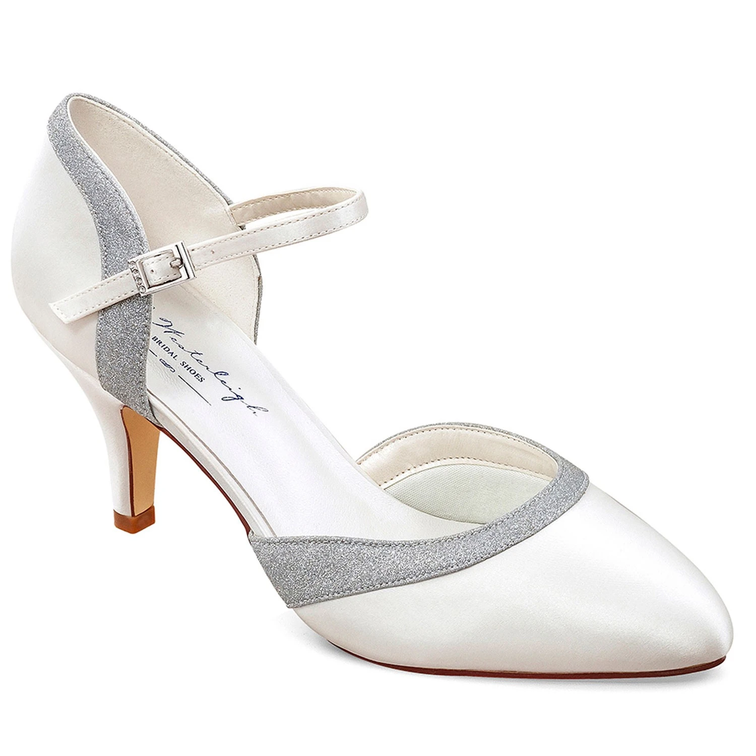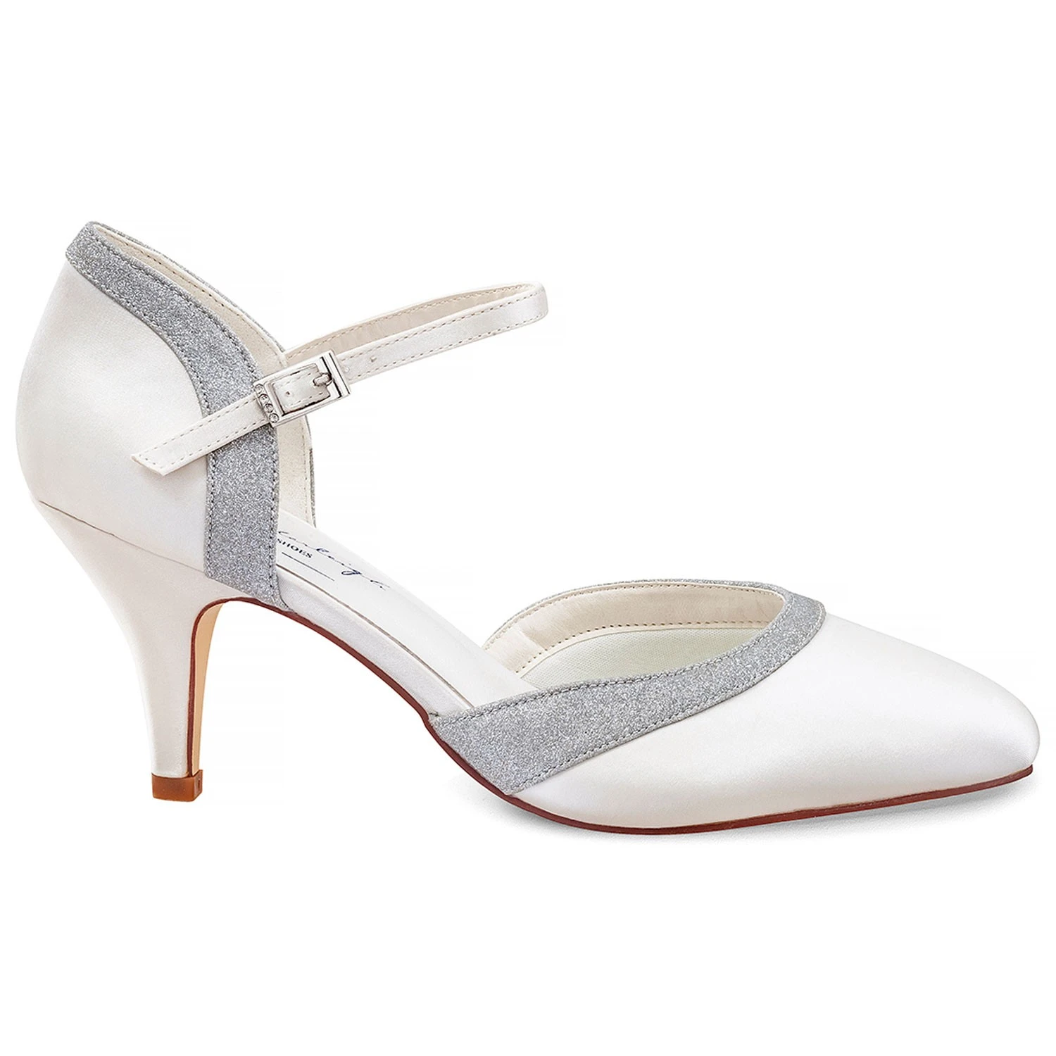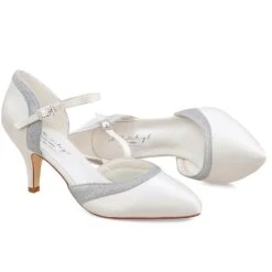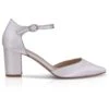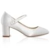 Chaussures de mariage classiques en stain: bout rond, talon moyen et bride Ă la cheville.