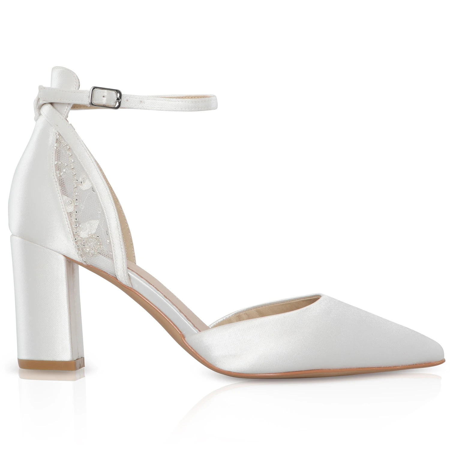 Sublimes chaussures de mariée fabriquées à la main en satin ivoire.