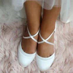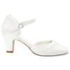 Chaussures de mariée fabriquées à la main en dentelle ivoire avec bordure et bride en satin.