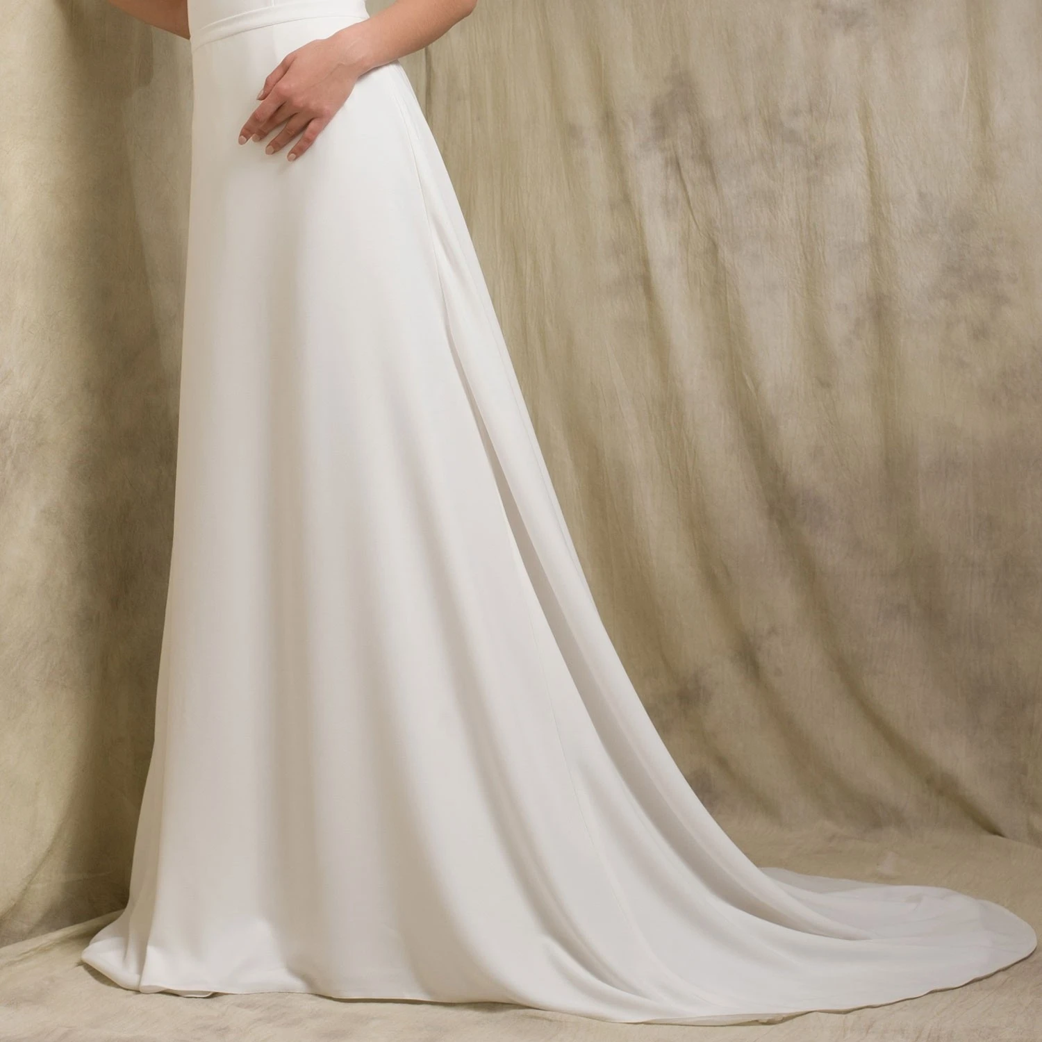 Jupe de mariée longue en mousseline avec une petite traîne.