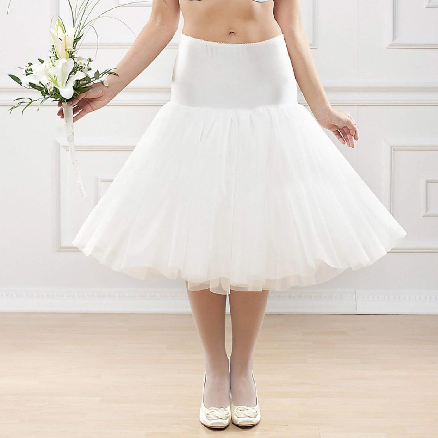 Jupon de mariage sans cerceau pour robe de mariée courte.