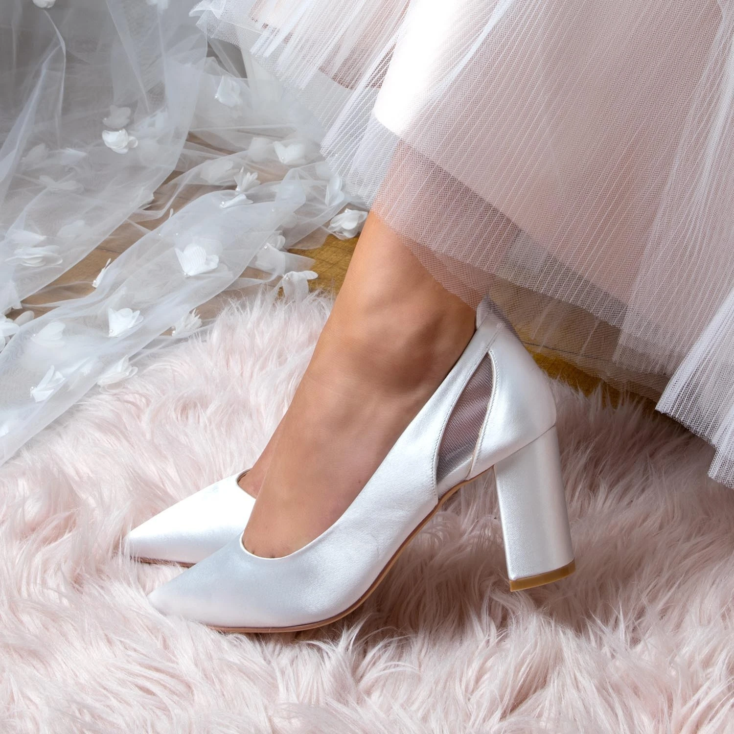 Avec un bout pointu, cette chaussure simple mais élégante est idéale pour une mariée qui souhaite un talon moderne avec un peu de hauteur.
