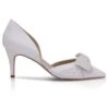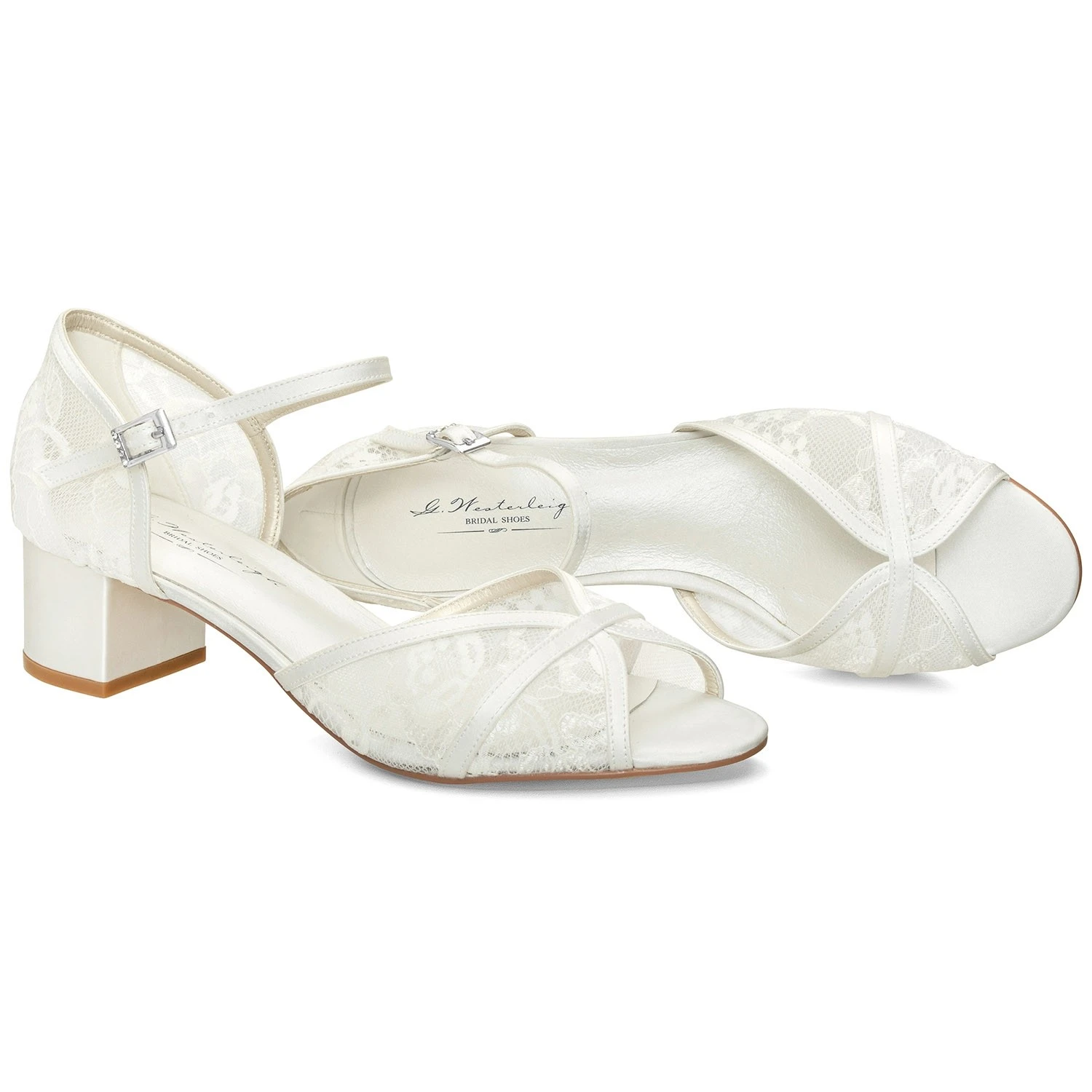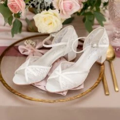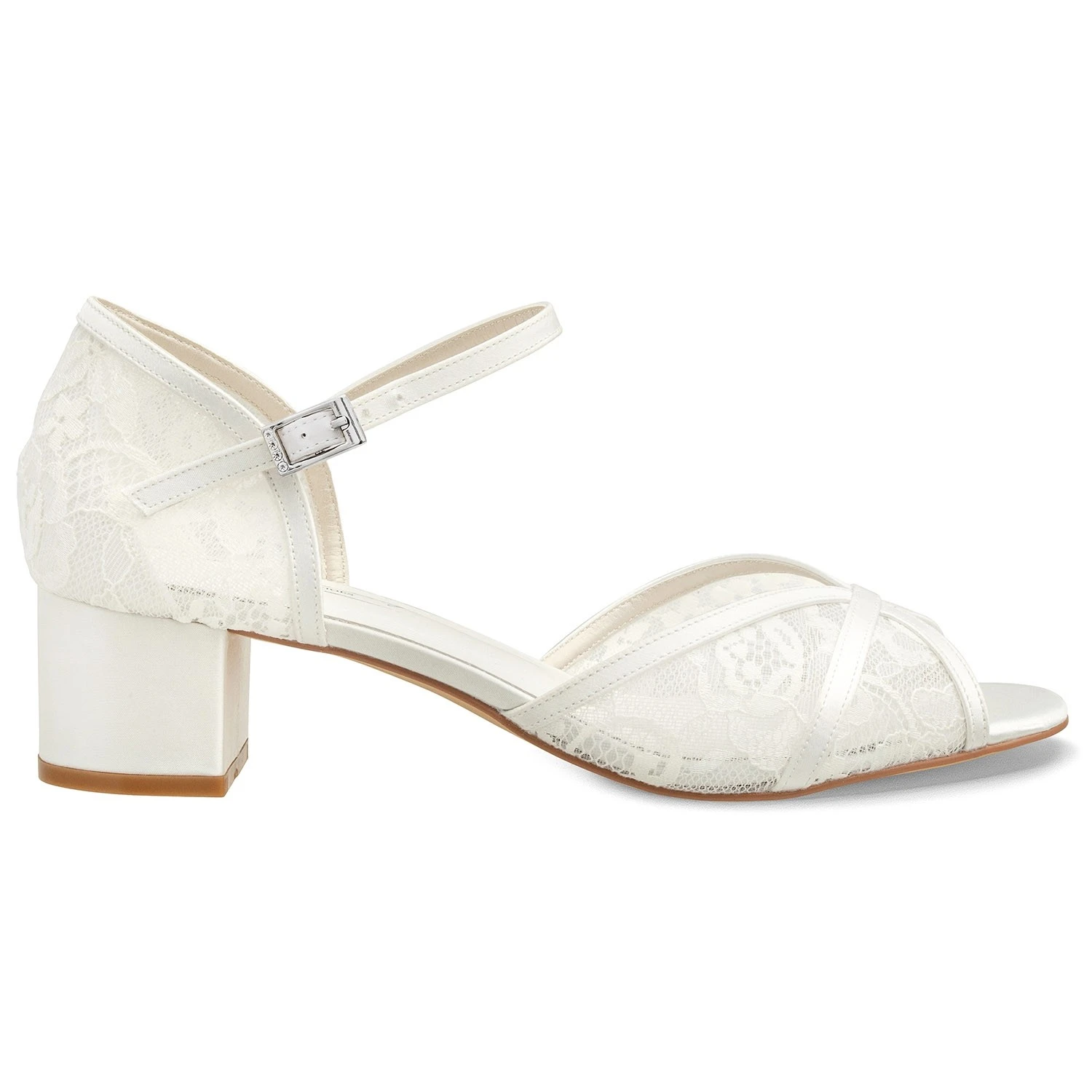 La sandale de mariage exclusive Lindsey est fabriquée à la main en satin et en dentelle, avec un style moderne et tendance.