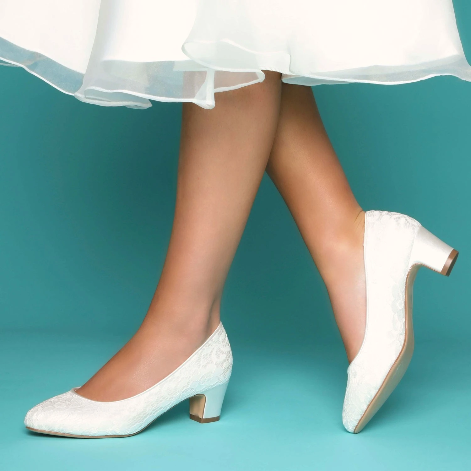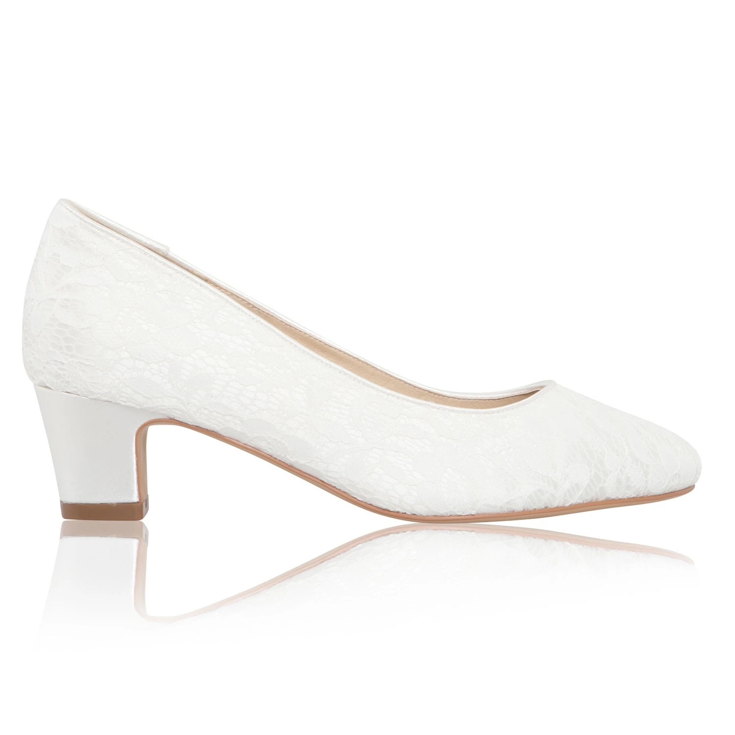 Chaussures de mariage Ă petits talon et dentelle ivoire.