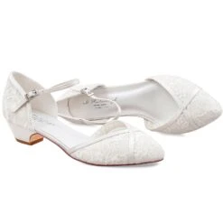 Magnifiques chaussures de mariage ivoire à petit talon et à bout pointu.
