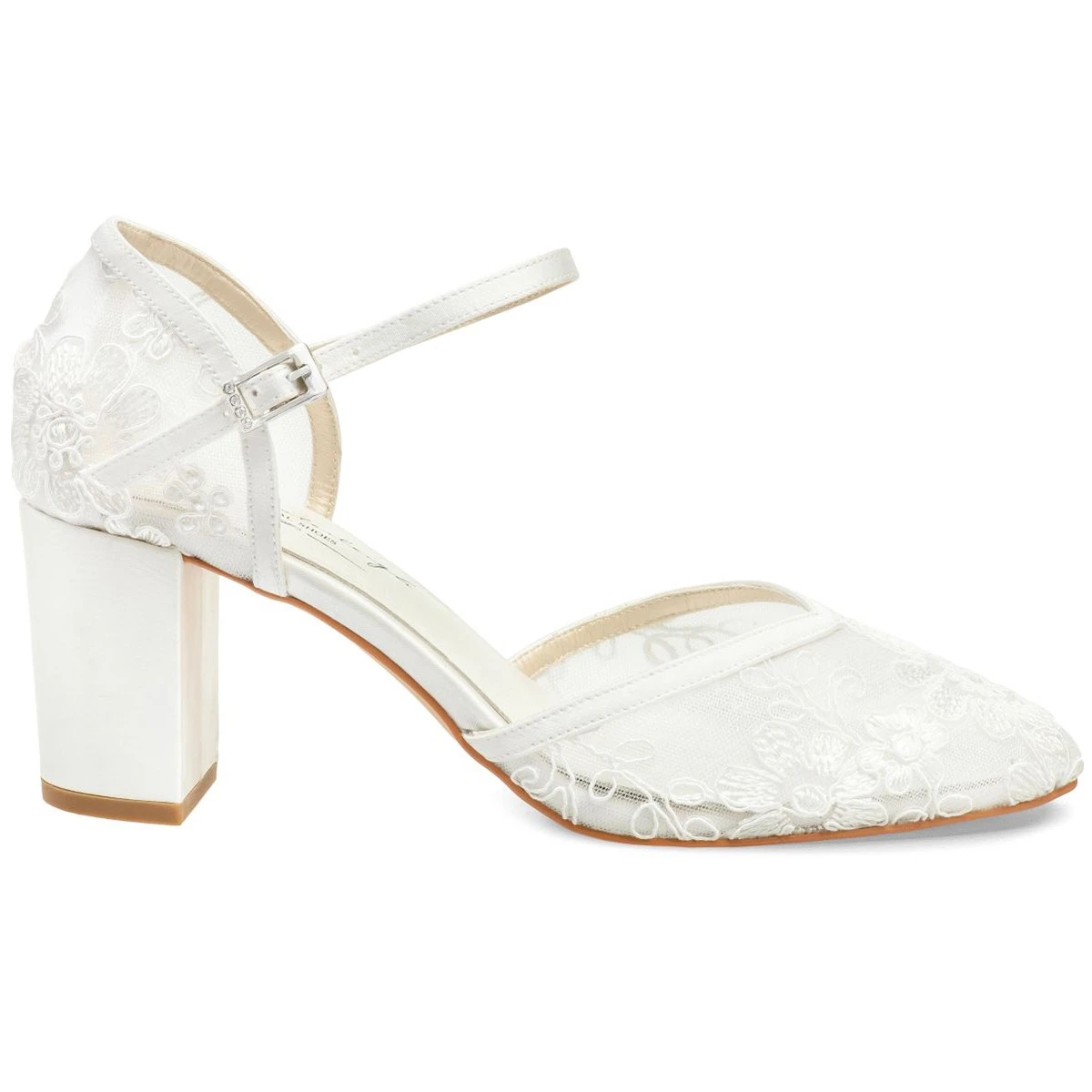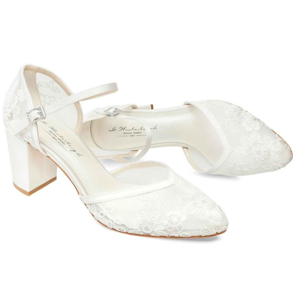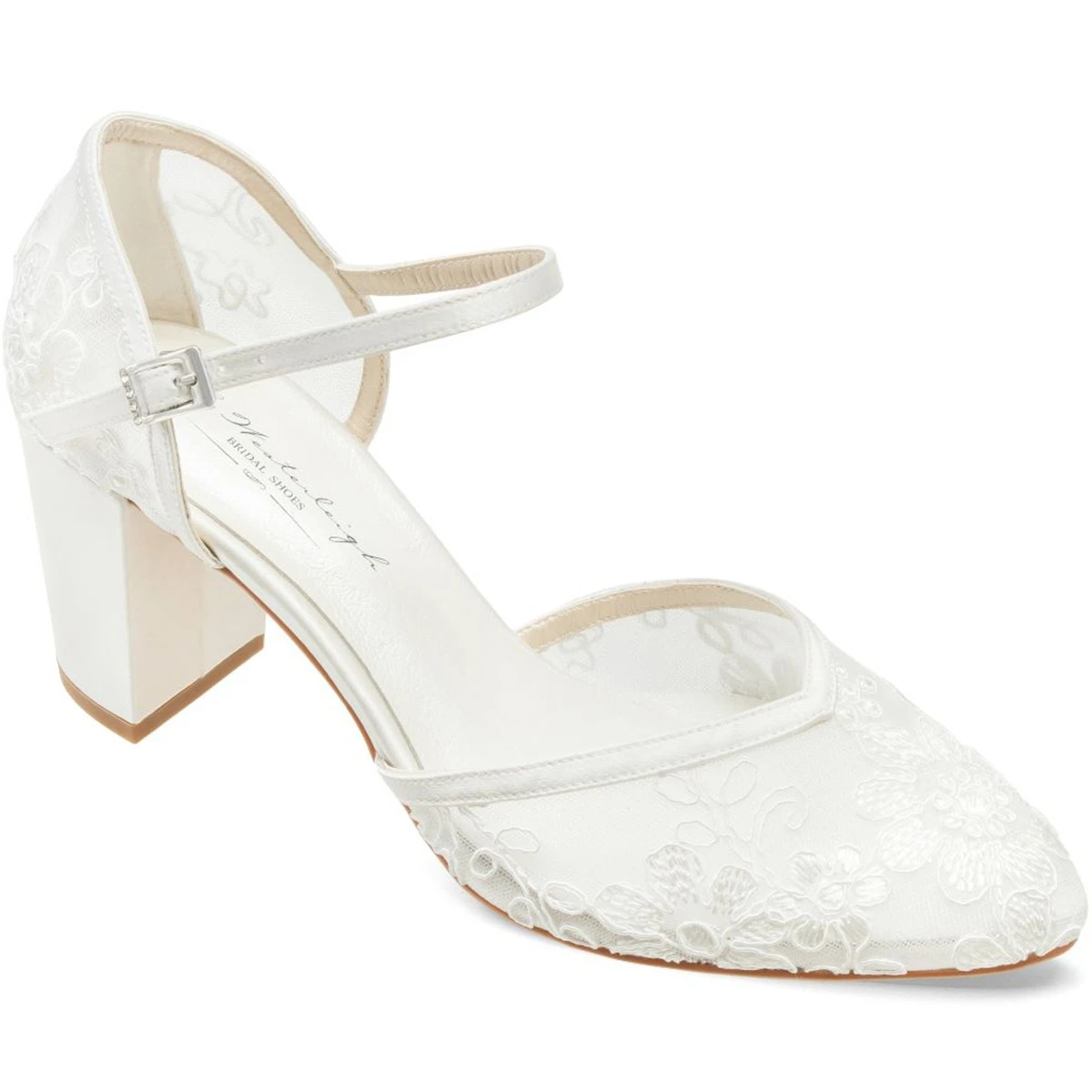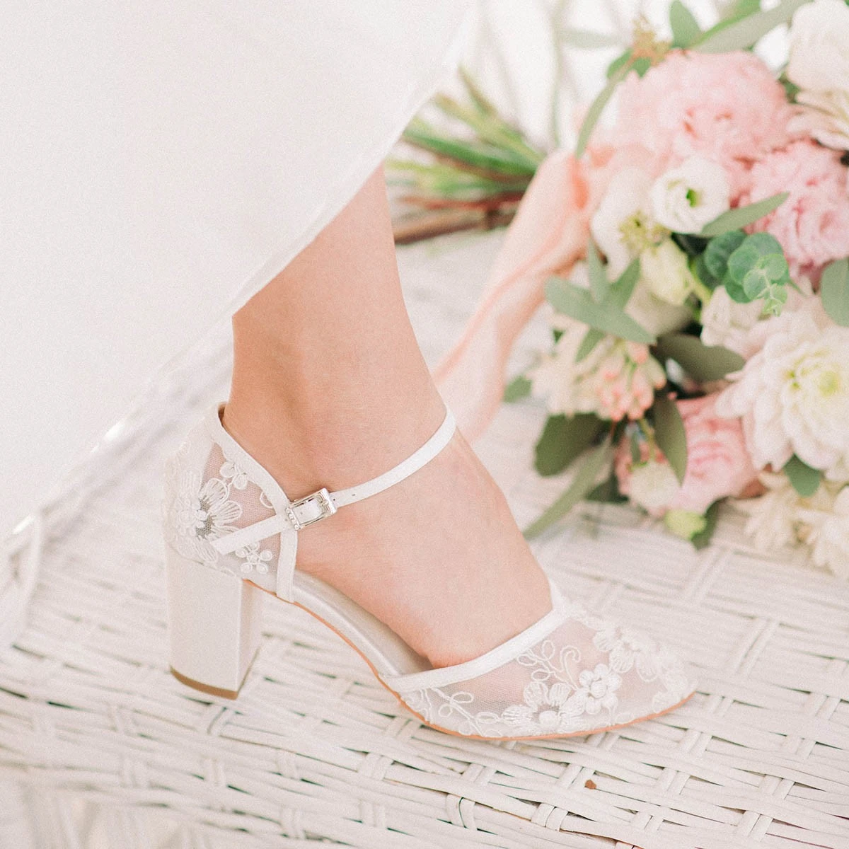 Place Ă l’originalitĂ© avec ces chaussures de mariĂ©e en dentelle transparente habillĂ©e de motifs fleuris.