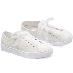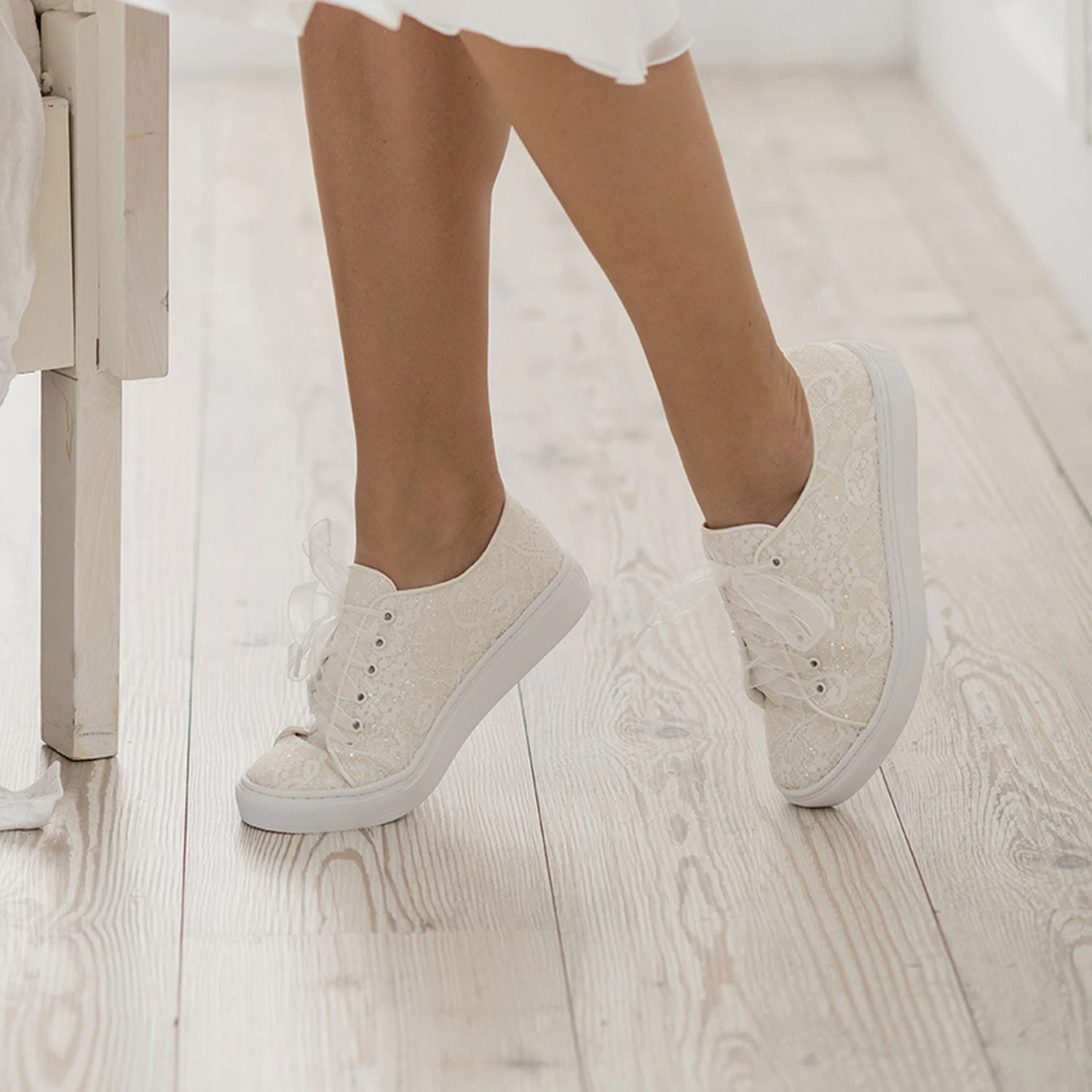 Les baskets sont livrées avec 2 jeux de lacets: une paire en organza (comme sur les photos) et une paire en satin. A vous de choisir votre style !