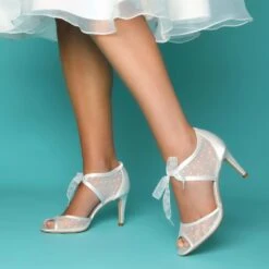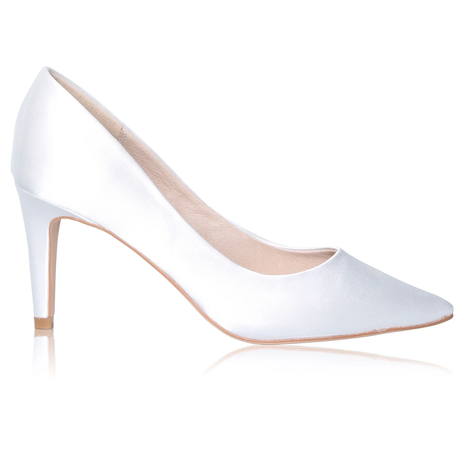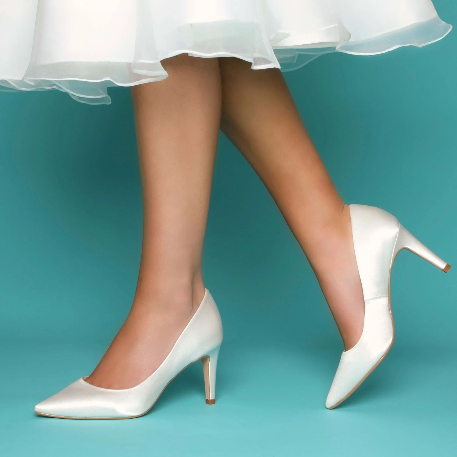 Escarpins de mariage classiques Ă talon haut et bout pointu.