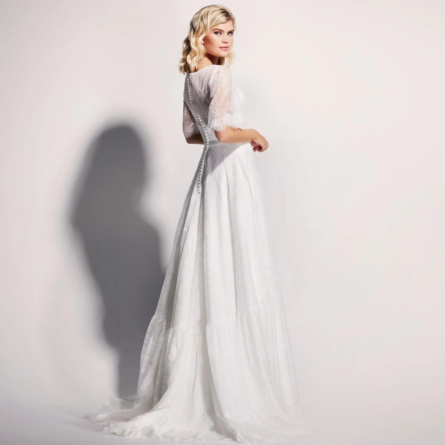 Robe De Mariage Bohème Dentelle à Manches Courtes Brescia