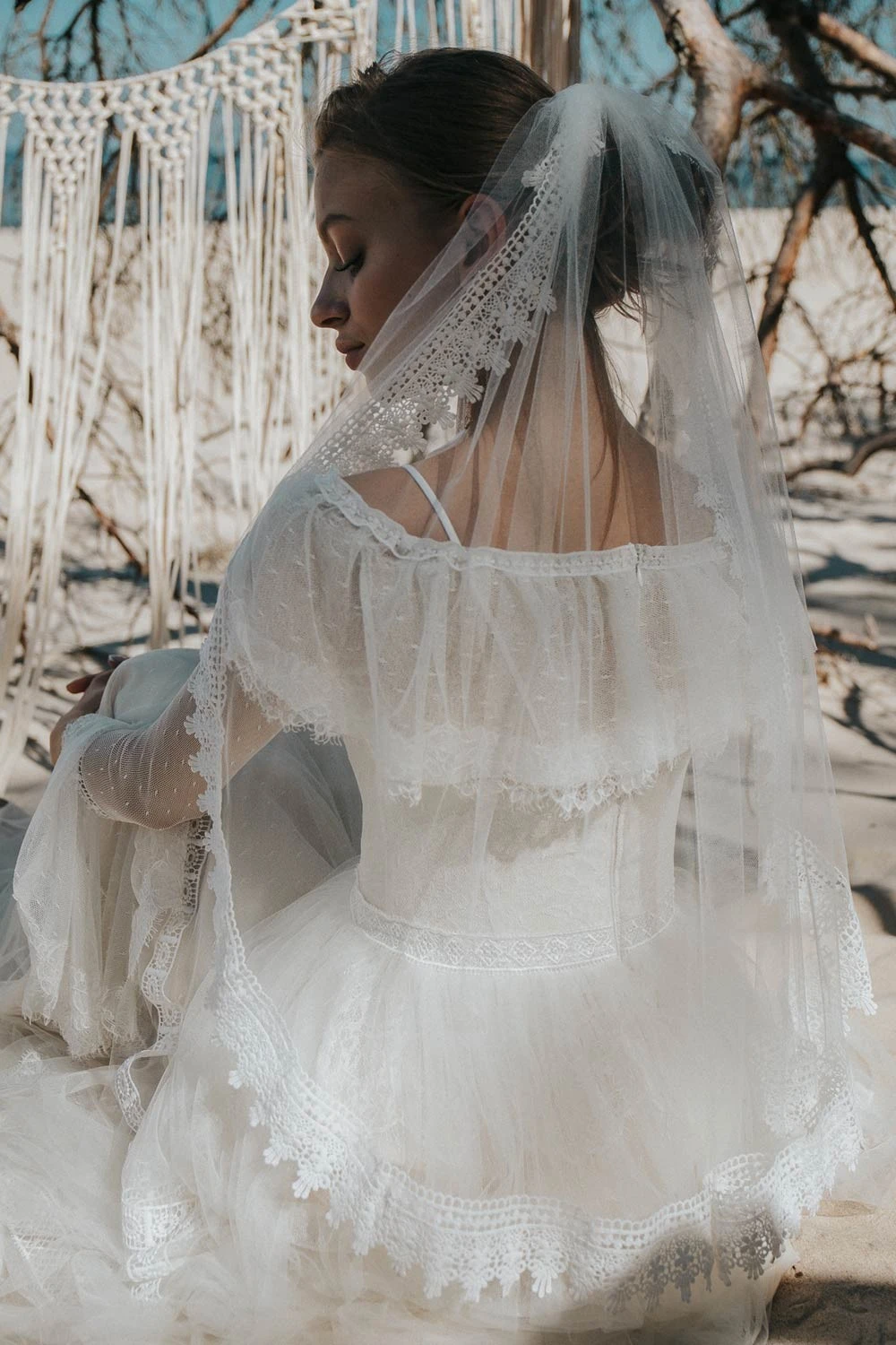 Robe De Mariage Bohème Dentelle Et Tulle à Pois Astéria