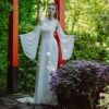 La robe se ferme dans le dos grâce à un laçage permettant d’ajuster parfaitement le bustier.