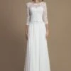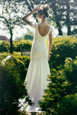 Robe de mariée bohème encolure en V et avec dos dégagé.