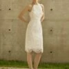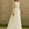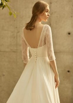 Réalisée en ivoire, la robe dispose de jolies manches 3/4 en dentelle.