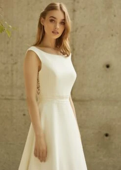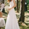 Robe de mariée princesse originale avec bustier et jupe en mousseline, et dentelle élégante dans le dos.