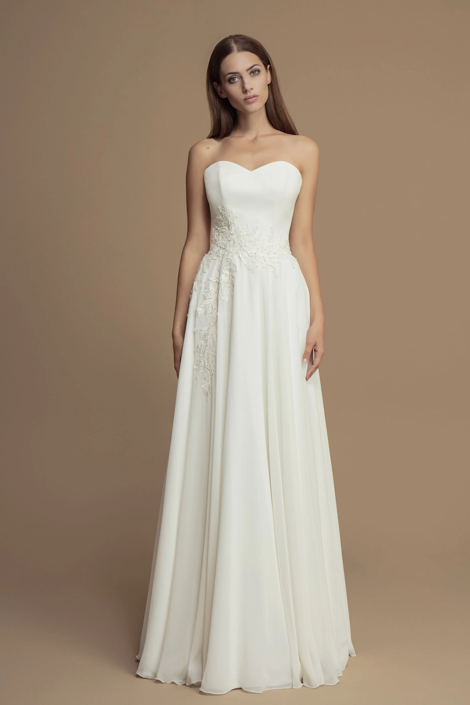 Robe De Mariée En Mousseline Et Dentelle à Bustier Cœur Gaïana