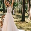 La robe se ferme dans le dos grâce à un laçage permettant d’ajuster parfaitement le bustier.