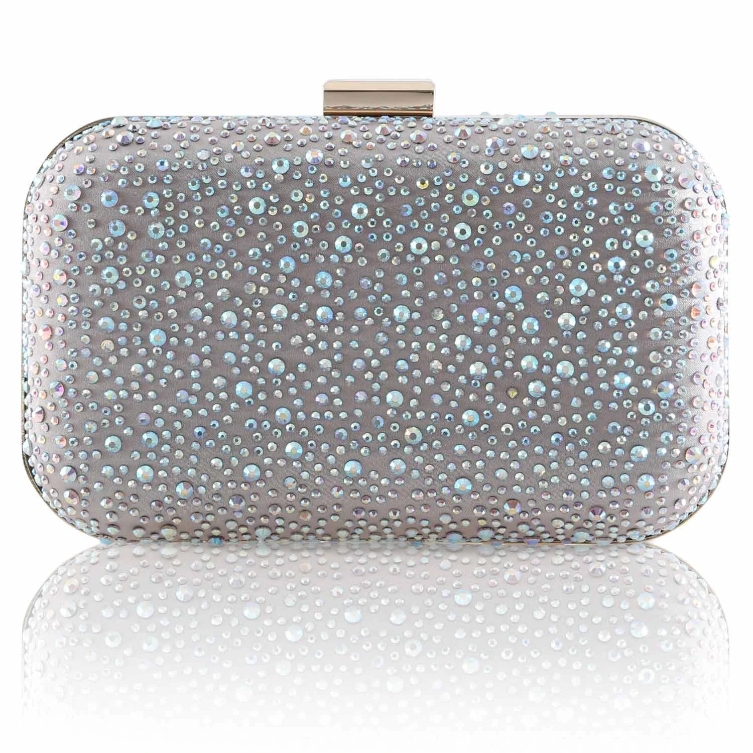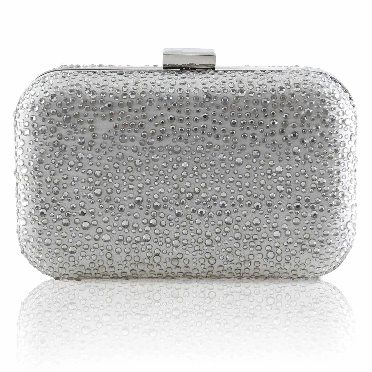 Sac mariage en satin dĂ©corĂ© d’une multitude de cristaux.