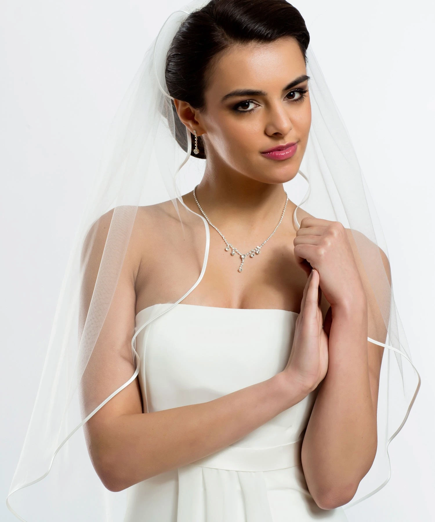 Voile de mariée en tulle souple avec bordure en satin.