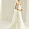 Voile de mariée mi long disposant d’une belle et large bordure en dentelle.