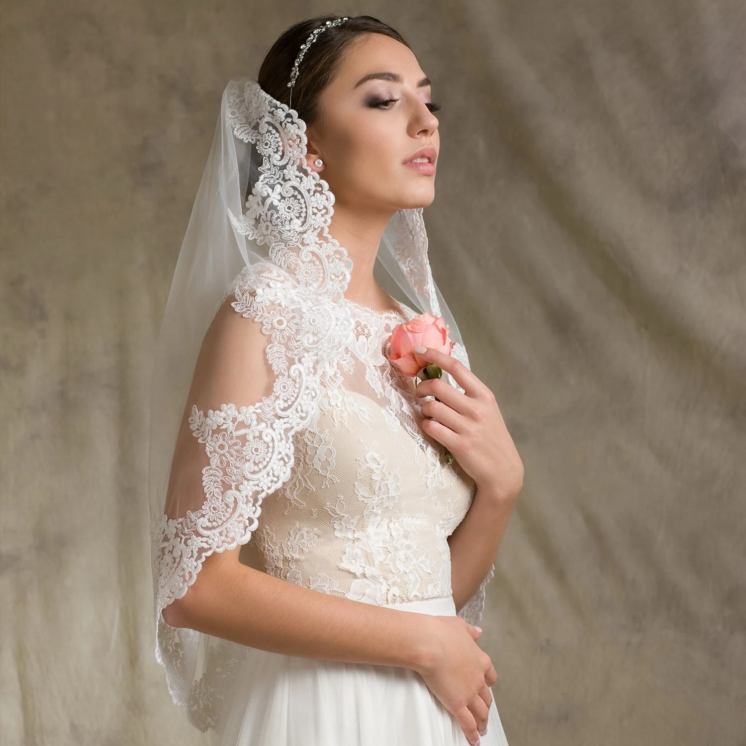 Voile De Mariage Mi Long Dentelle Sans Rabat Violette